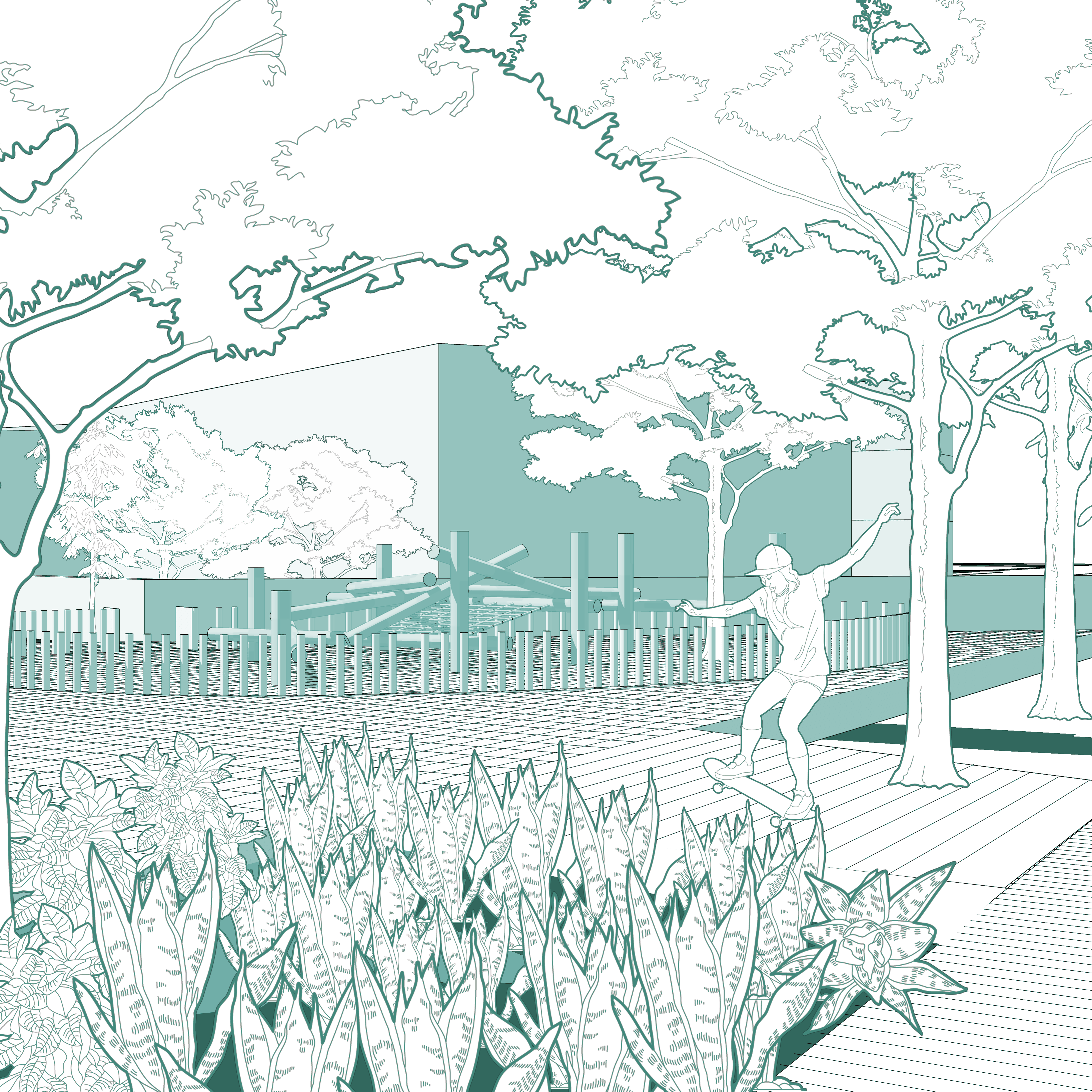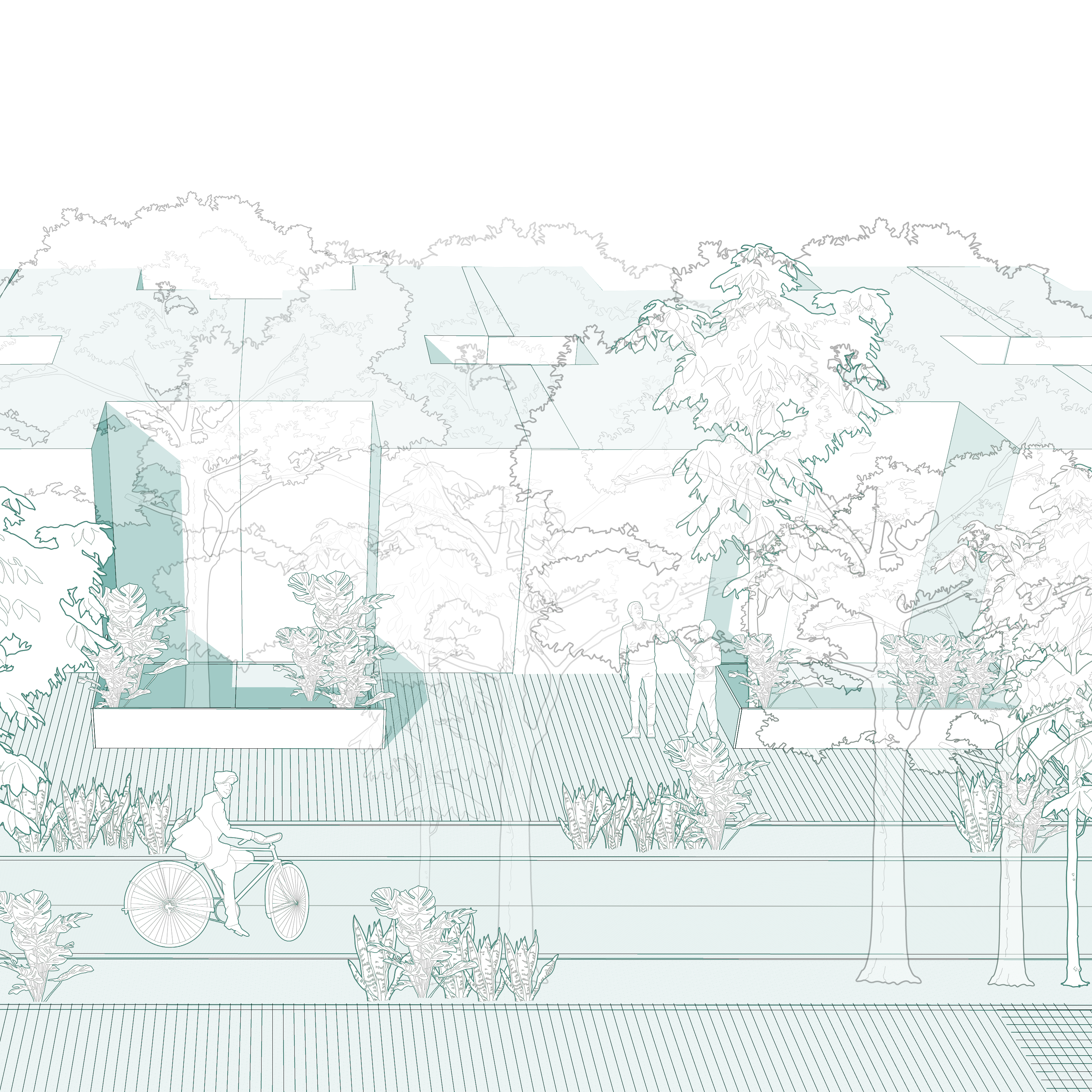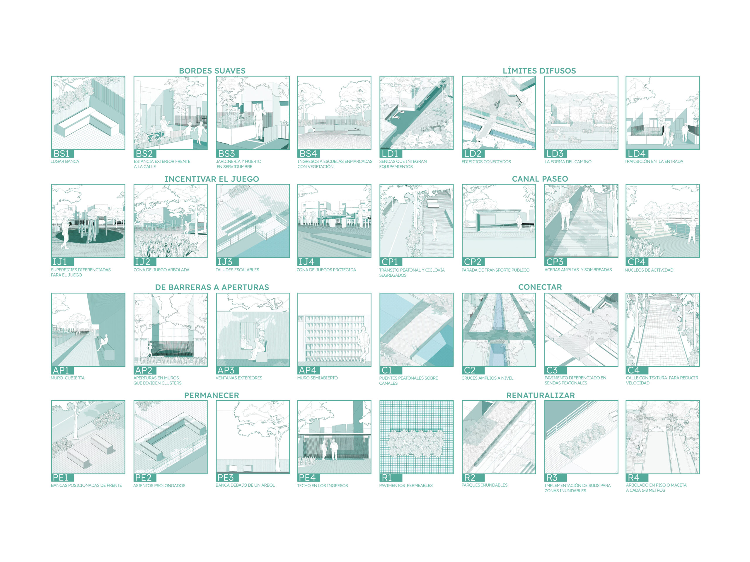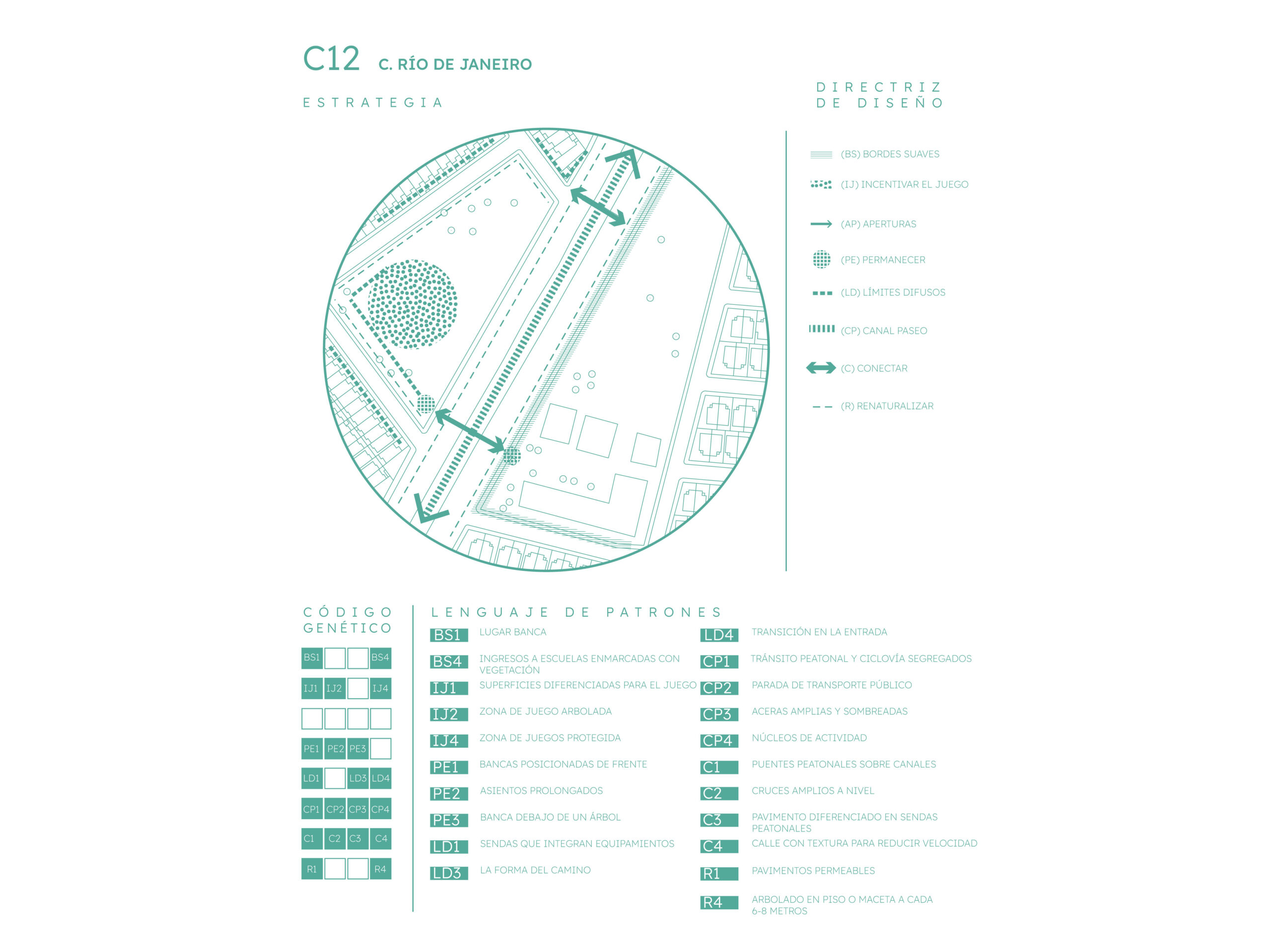 La aplicación sistematizada del proyecto de regeneración se materializa en la prolongación de los ejes de transformación, resultando en un distrito conectado, activo, diverso y sustentable.